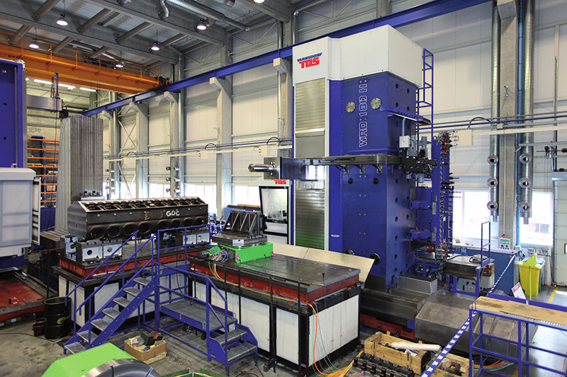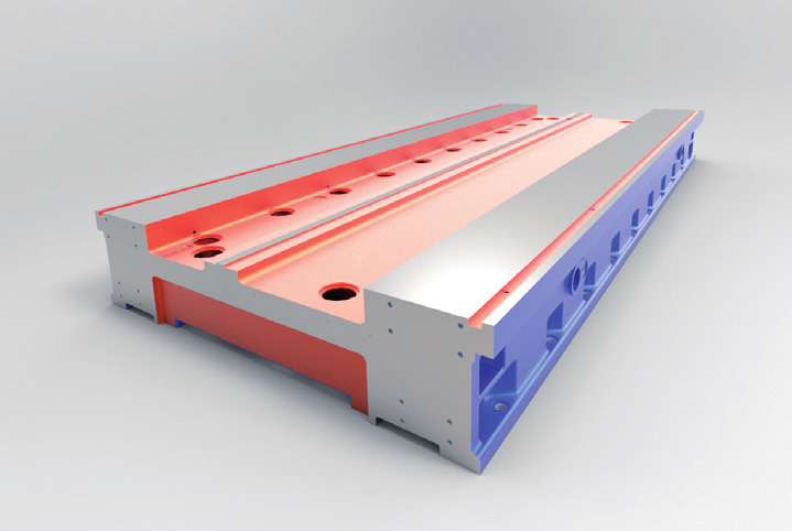 移動部件的導(dǎo)軌 X軸的導(dǎo)軌包括四個承載面,每個面包括9個液壓腔通過兩個獨立的動力單元,總計有36個封閉的液壓腔。 Y軸導(dǎo)軌的三個表面都經(jīng)過精密磨削。 主軸箱的導(dǎo)軌面包括兩個液壓腔帶有獨立的壓力油入口。 滑枕的導(dǎo)軌面包括16個復(fù)合材料接觸面的靜壓單元。  |