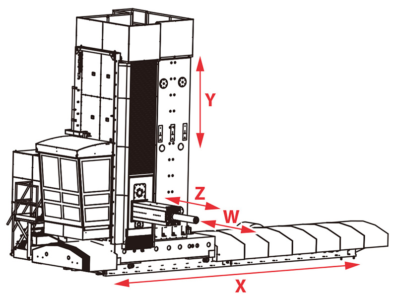 Y,Z,W軸的驅(qū)動 Y,Z,W三軸采用獨立的電力控制伺服驅(qū)動。X軸采用兩個電力控制伺服驅(qū)動系統(tǒng)。W,Z軸采用滾珠絲杠傳動。W,Z軸采用齒輪箱驅(qū)動。  |
