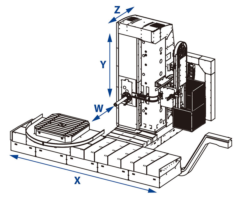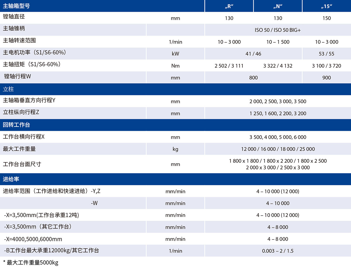 • WHN(Q)13/15CNC機(jī)床配置了工作鏜軸直徑為130mm和150mm。