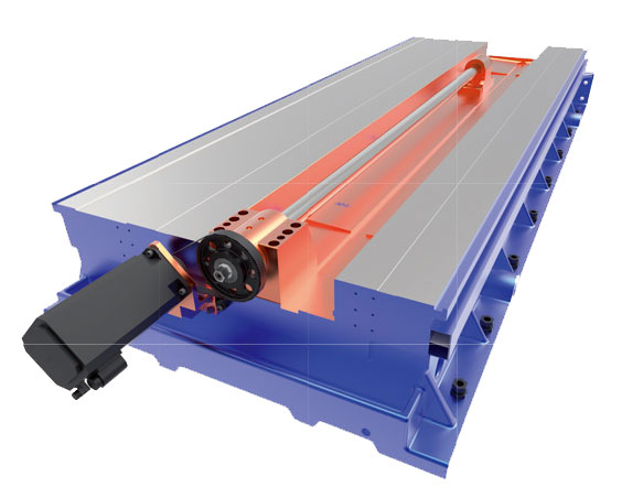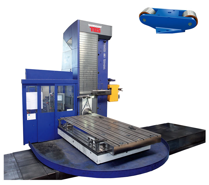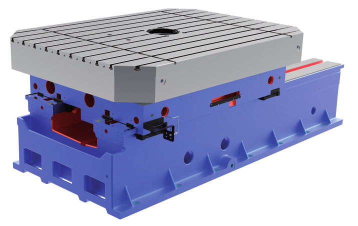 工作臺(tái)坐落在環(huán)形滑動(dòng)導(dǎo)軌上,重載十字交叉軸承位于中心。