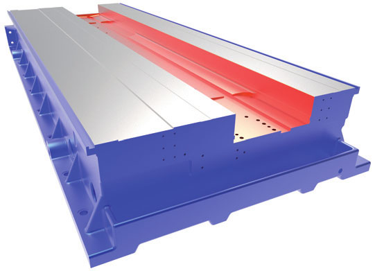 硬化鋼板內(nèi)嵌在導(dǎo)軌表面中央位置,和另一面的滾動(dòng)軸承單元配合。