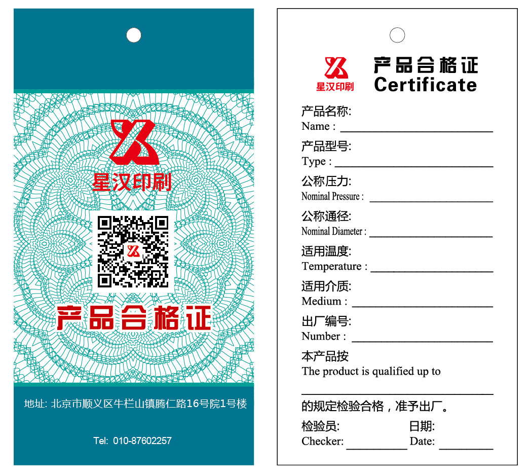 (5)從數(shù)碼技術(shù)上講:防偽合格證利用計算機(jī)技術(shù)、通訊技術(shù)及密碼技術(shù)生成無規(guī)則、不重復(fù)的防偽數(shù)碼,真正做到一物一碼,安全保密,防偽性能極佳。